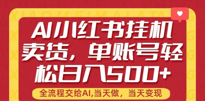 全流程托管AI进行卖货.单账号轻松日入500+,当天做,当天可以见收益!小红书是今年最大的风口,AI技术更是,双重增益加持,26年死磕这个项目就够了!