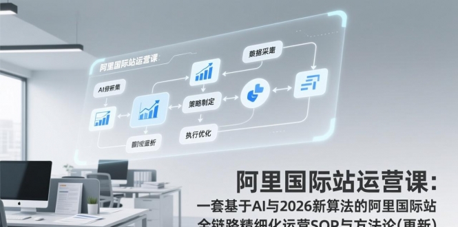 阿里国际站运营AI提效平台新算法解析,核心教你用新算法和AI工具,快速拉升金品店铺权重,抢占平台流量。内容直给:从数据化选品、爆品打造,到直通车、品牌聚量等广告矩阵的精准投