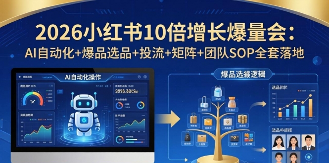本课程专为0基础新手打造,全程手把手教学,覆盖账号定位、养号、蓝海选品、货源挖掘、店铺开通、商品上架、物流发货、笔记创作、混剪带货、实拍攻略、转化提升等全流程,从0