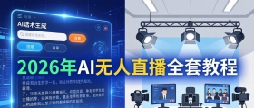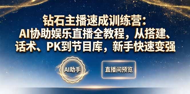本课程主打AI协助娱乐直播实战教学,从基础直播搭建、音效特效、场景设计、口才话术、PK玩法、节目库,到粉丝运营、直播脚本全流程覆盖,搭配100+节目素材与AI直播增效方法,