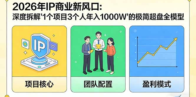 本课程深度拆解“1个项目3个人1年1000W”的极简操盘模型。课程涵盖IP定位、产品化打造、全域流量获取、1v1及批量成交系统、私域链路搭建及商业放大等核心模块,带你重构AI+IP时代的商