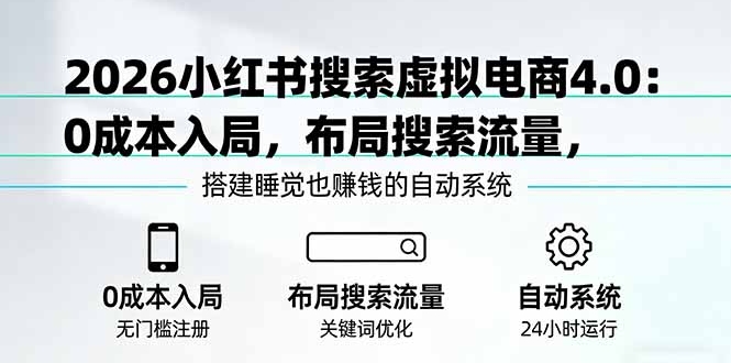 本课程是2026年小红书搜索虚拟电商陪跑训练营4.0,聚焦“0成本投入、操作简单、被动收入”三大核心优势。课程系统讲解小红书虚拟电商的完整玩法:从平台政策红利(虚拟商品专属类目、