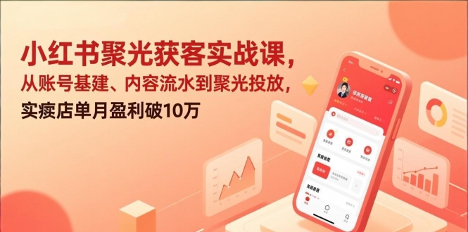 本课程系统教授本地商家如何通过小红书聚光广告实现高效获客。内容涵盖从账号定位、主页装修、爆款内容批量制作,到聚光投流精准投放与数据优化,最终完成私域转化的全流程。课程注重