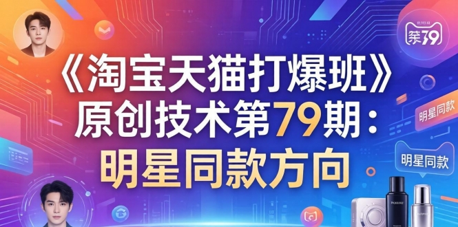 本课程是《淘宝天猫打爆班》原创技术第79期,聚焦“明星同款方向”爆款打法,帮助商家精准卡位同行、抢占行业核心流量与利润。课程系统拆解5个明星同款店案例,从高达80%的超高利