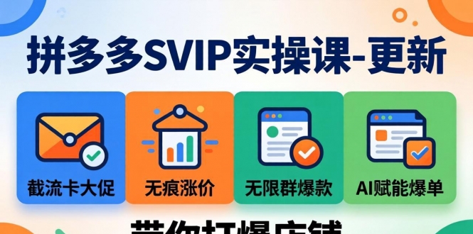 本课程覆盖从0-1开店、市场调研、活动运营、微付费/强付费高投产打法、黑标产品、万人团、矩阵秒杀、月卡玩法等全套最新玩法,系统教学、全平台最新规则,让新手与老商家都能