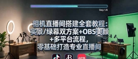 本套**高清直播间搭建课程**,全方位讲解手机与电脑直播设备选型、不同预算摄像头/相机方案、麦克风调试设置、多平台通用直播搭建流程。详细演示后置摄像头直播、电脑投屏连