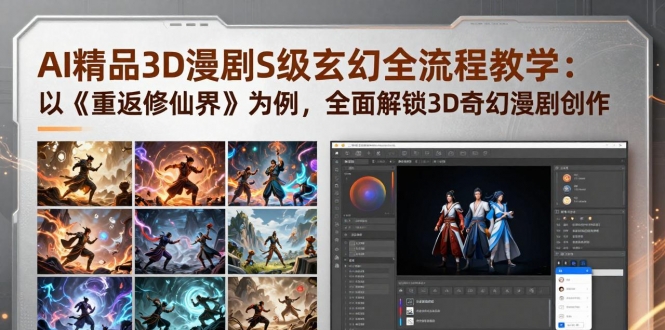 3D竖屏精品漫剧,短视频时代的视觉震撼。打通创作任督二脉,构建系统化漫剧生成思维,标准化流程适配竖屏时代传播需求。从思路创意-剧本分镜-角色场景-动作特效-剪辑输出,全流程程