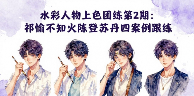 本课程通过多个实战案例系统教学水彩人物上色技法。课程从课前准备入手,以祁煜上色、不知火上色、陈登上色、苏丹上色等完整案例为主线,每两周穿插作业反馈与答疑环节,手把手带