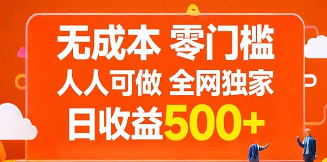 无成本,零门槛,人人可做,全网独家,真实日收益500+