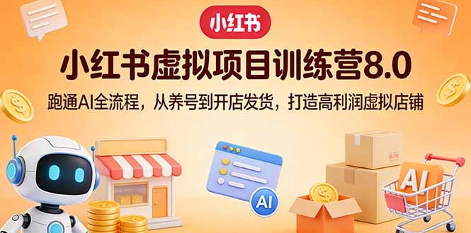 本课程是陆明明出品的小红书虚拟项目特训班8.0,系统带你跑通AI全流程,2026年3月最新更新。课程涵盖**认识阶段**(虚拟项目认知、高收益店铺案例、平台差异分析)、**养号阶段**