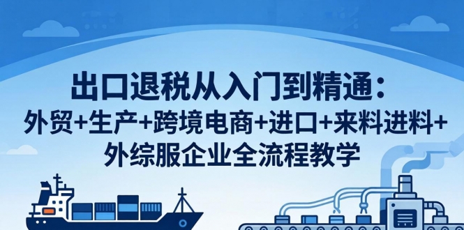 本课程覆盖外贸企业、生产企业、跨境电商、进口企业、来料/进料加工、外综服企业六大主体,从公司注册、关务、收汇、账务、发票、退税申报到风险核查全流程手把手教学,含系