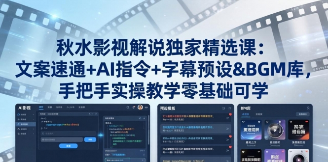 本课程为秋水影视解说独家精选实战课,涵盖40分钟爆款文案速通、AI文案指令教学、字幕预设与高效使用、全品类背景音乐库、AsrTools智能字幕工具、手把手实操演示及全套资源网