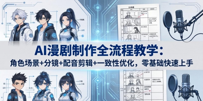 本课程为**AI漫剧制作全流程实战教学**,从市场分析、小说授权、角色/场景创建、剧本转分镜、分镜视频制作,到配音配乐、成片剪辑、一致性优化全覆盖,聚焦Seedance2.0、即梦