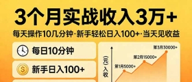3个月实战收入3万+,每天操作10几分钟,新手轻松日入100+,当天见收益