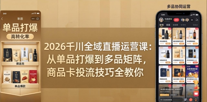 本课程聚焦直播单品、多品及商品卡放量实操,深度拆解千川投流核心逻辑,教你科学投放、避开无效消耗,实现精准放量与高效转化,提升直播带货整体盈利。