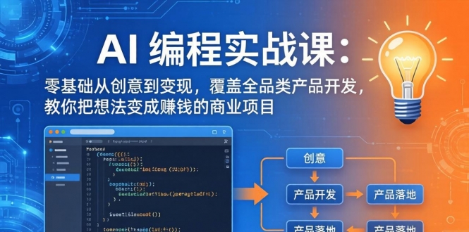 《AI编程实战课-第三期》是一套从创意到商业变现的全链路AI编程实战课。课程针对“想法不会做、Demo难落地、产品没人用”三大痛点,覆盖预备篇、起步篇、技术篇、认知篇、内