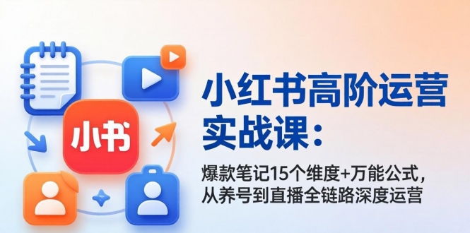 本课程是红薯电商进阶课,系统拆解小红书从0到1的深度运营与爆款打造体系。课程涵盖平台选择与3种变现方式、养号流量最大化与流量机制、爆款商品笔记15个考核维度、人工干预数据
